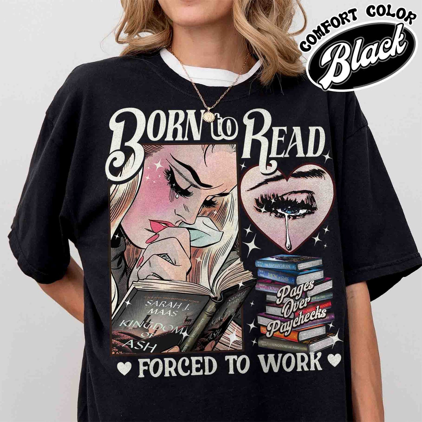 Fantasy Reader Comfort Color Shirt, Born To Read Forced To Work Shirt, Born To Read SJM book Shirt