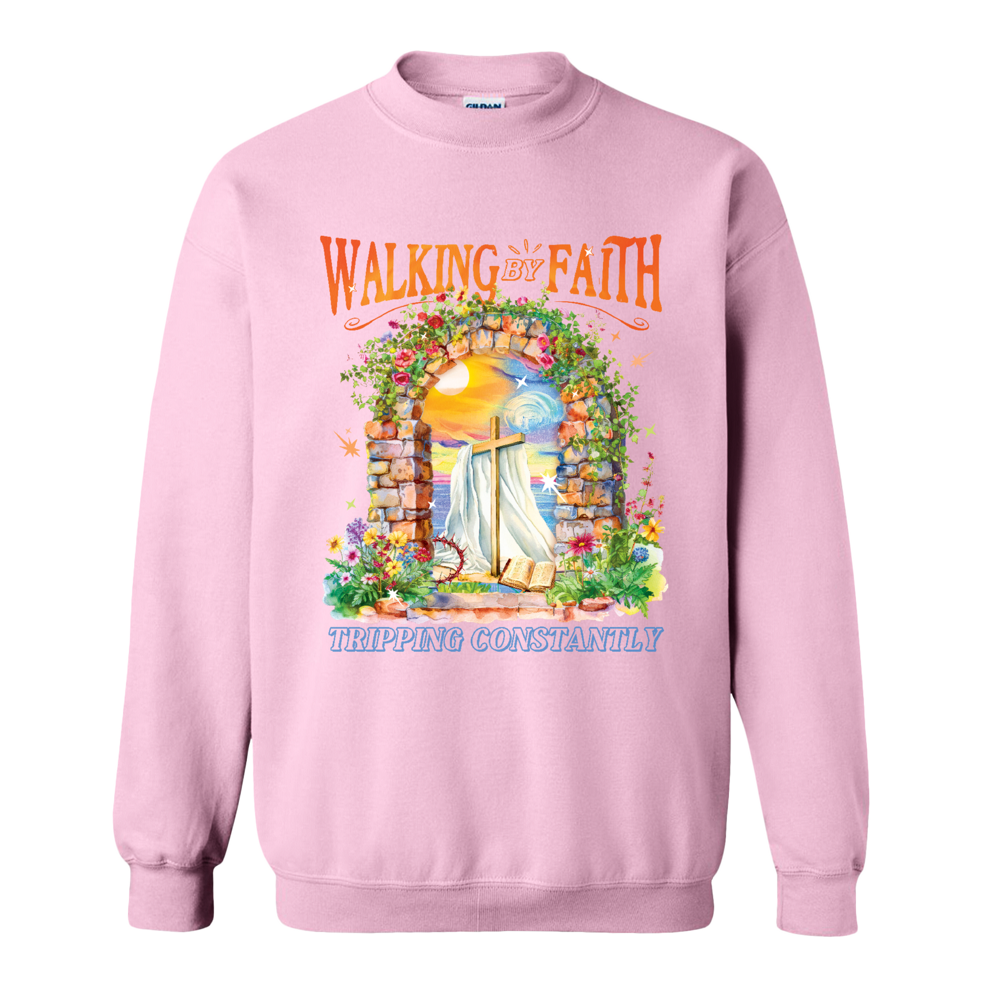 Christian Sweatshirt, Walking by Faith Tripping Constantly Sweatshirt, Inspirational Bible Verse Sweatshirt