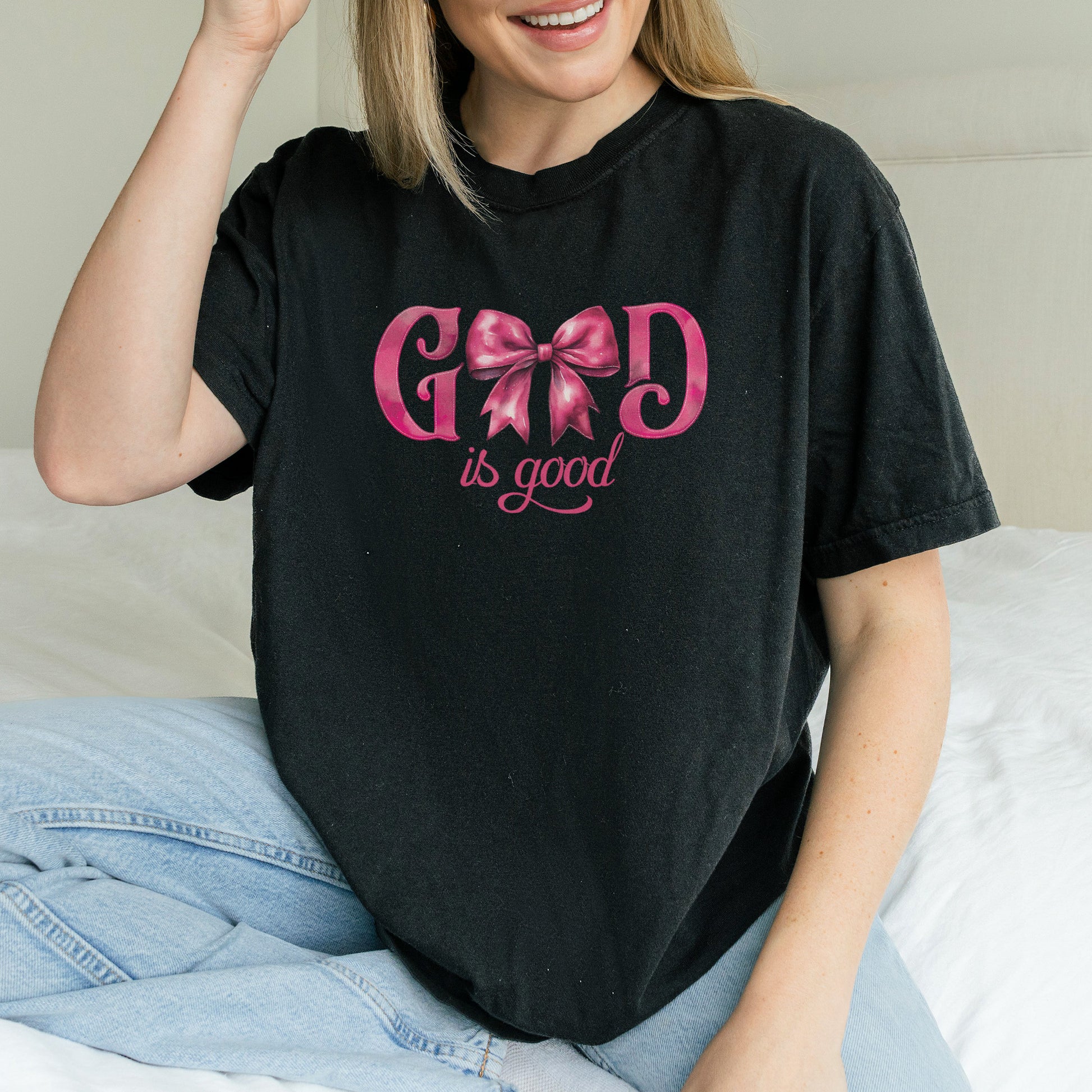 God Is Good Shirt | Pink Bow Christian Faith Tee, Bible Verse Top
