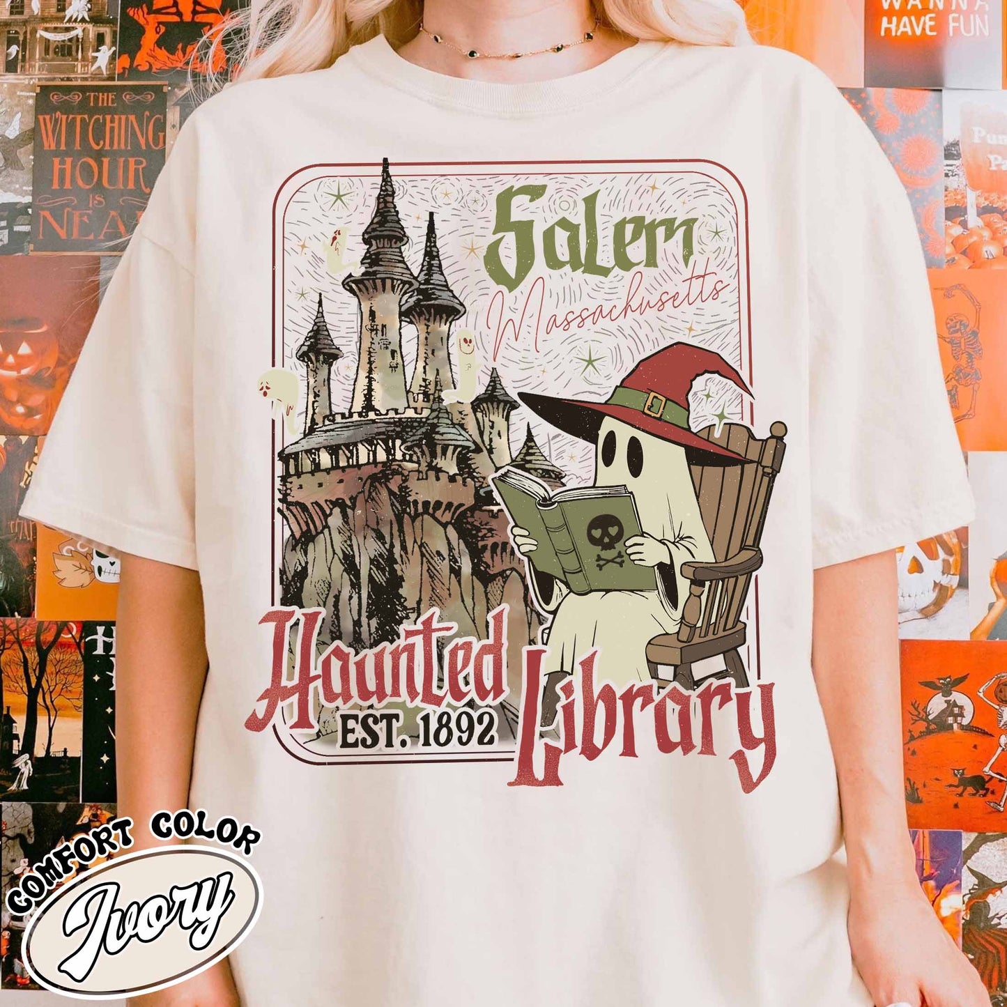 Halloween Book Lover Comfort Color Shirt, the Haunted Library Shirt, Salem Book Club Shirt